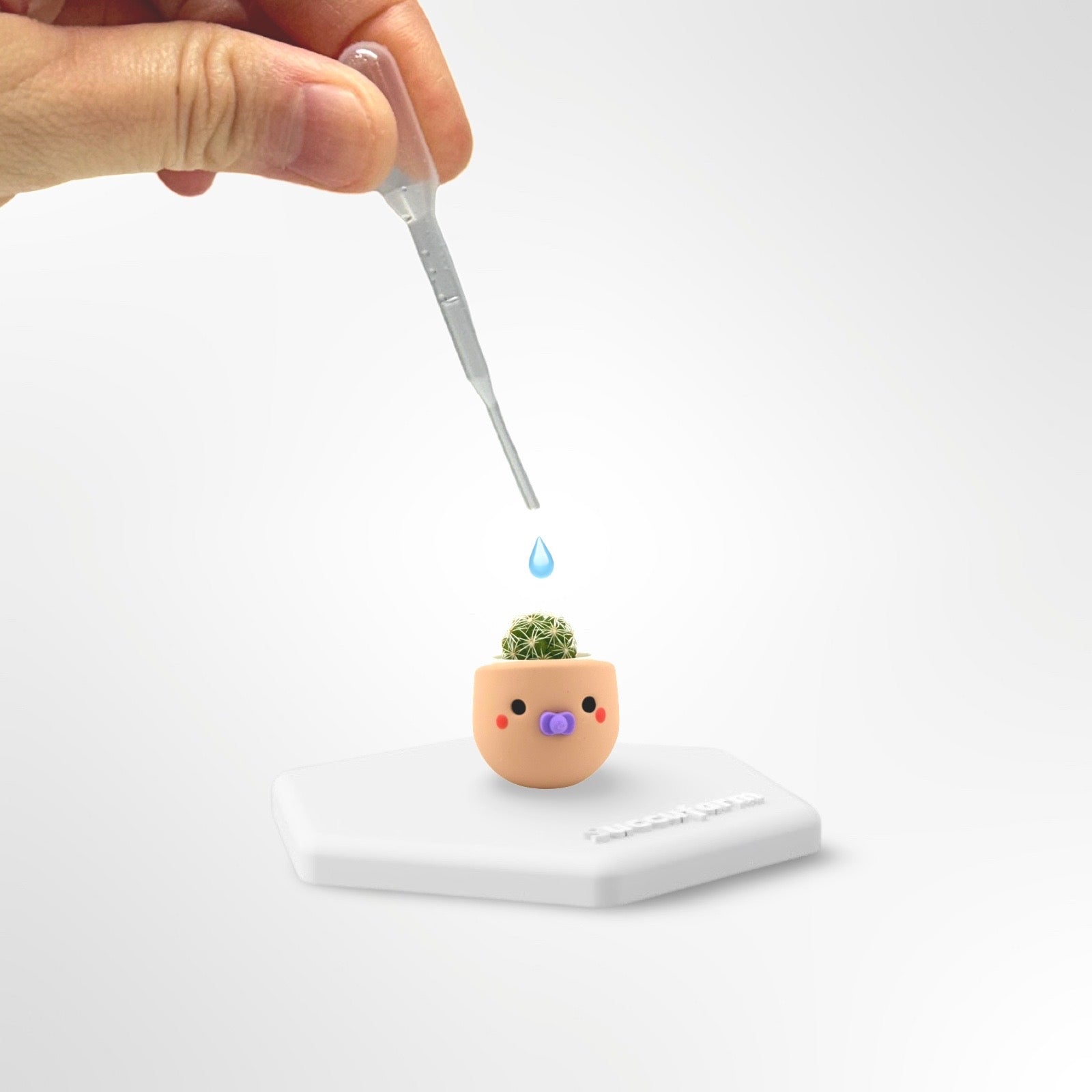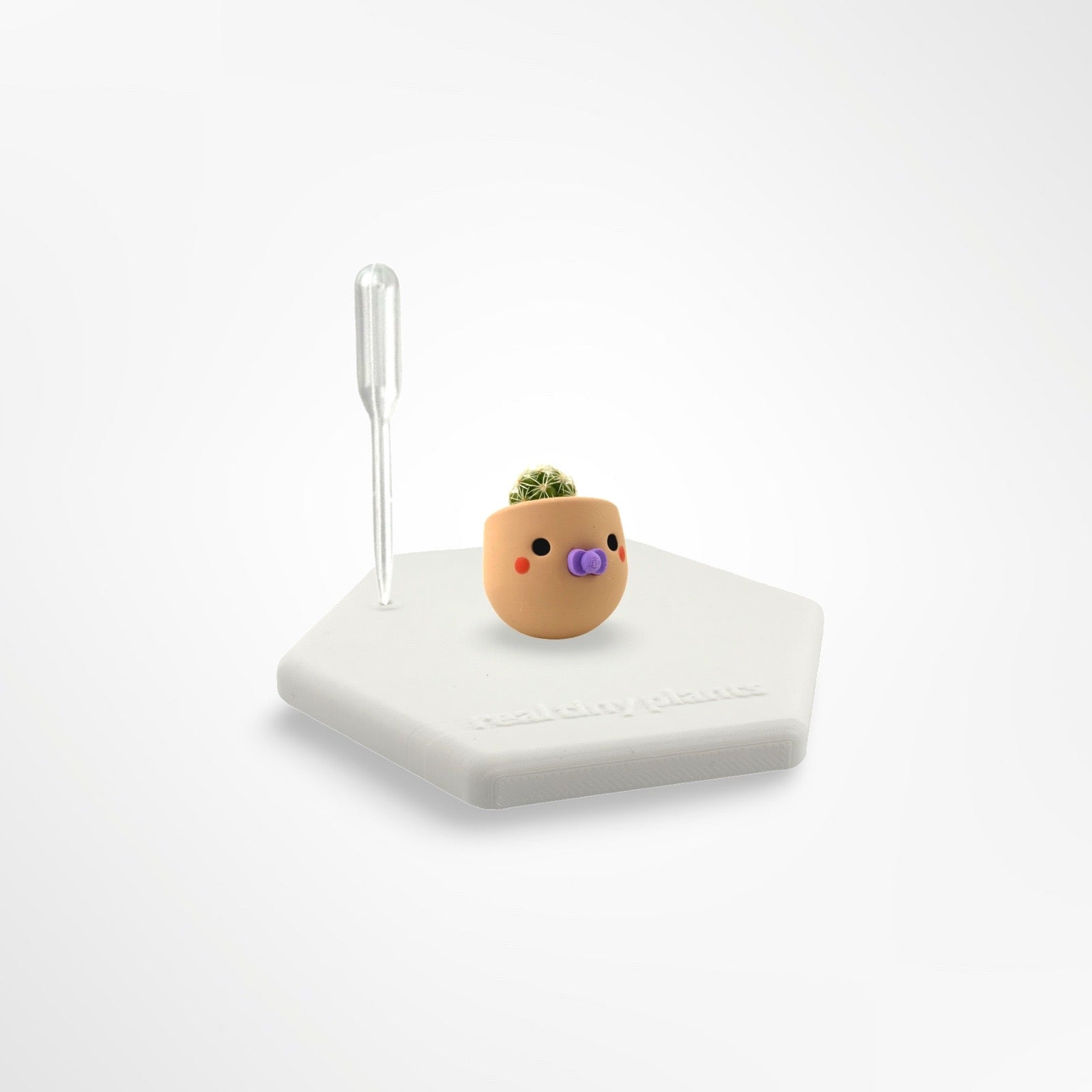 🧲 Each pot is magnetized to a hexagon stand, ensuring your tiny plant stays upright and centered. The stand also conveniently holds your tiny dropper.