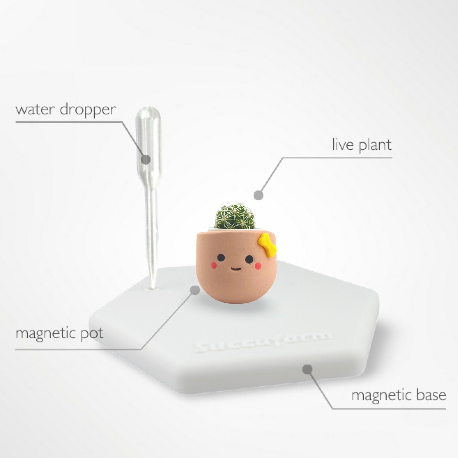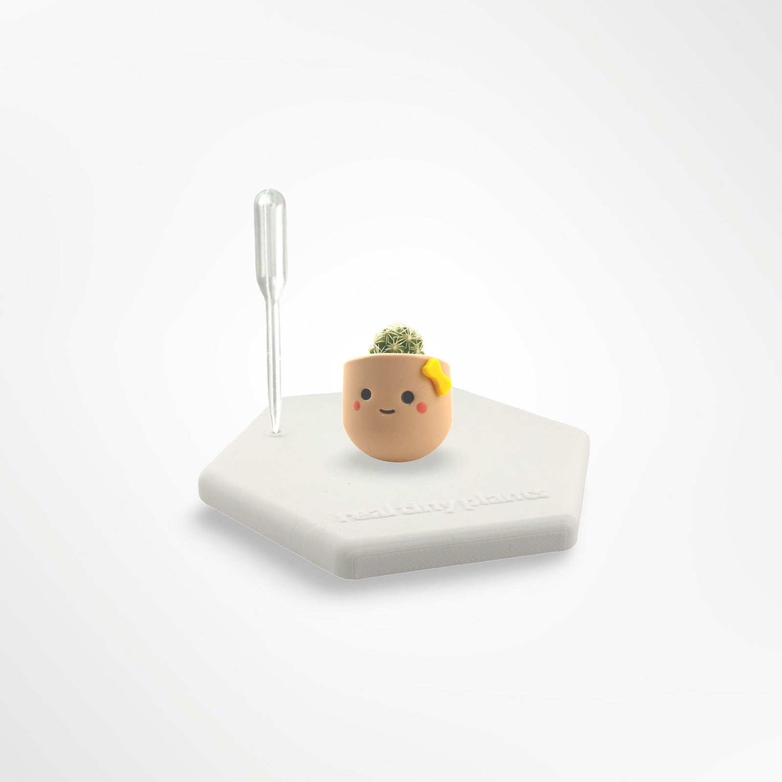 🧲 Each pot is magnetized to a hexagon stand, ensuring your tiny plant stays upright and centered. The stand also conveniently holds your tiny dropper.