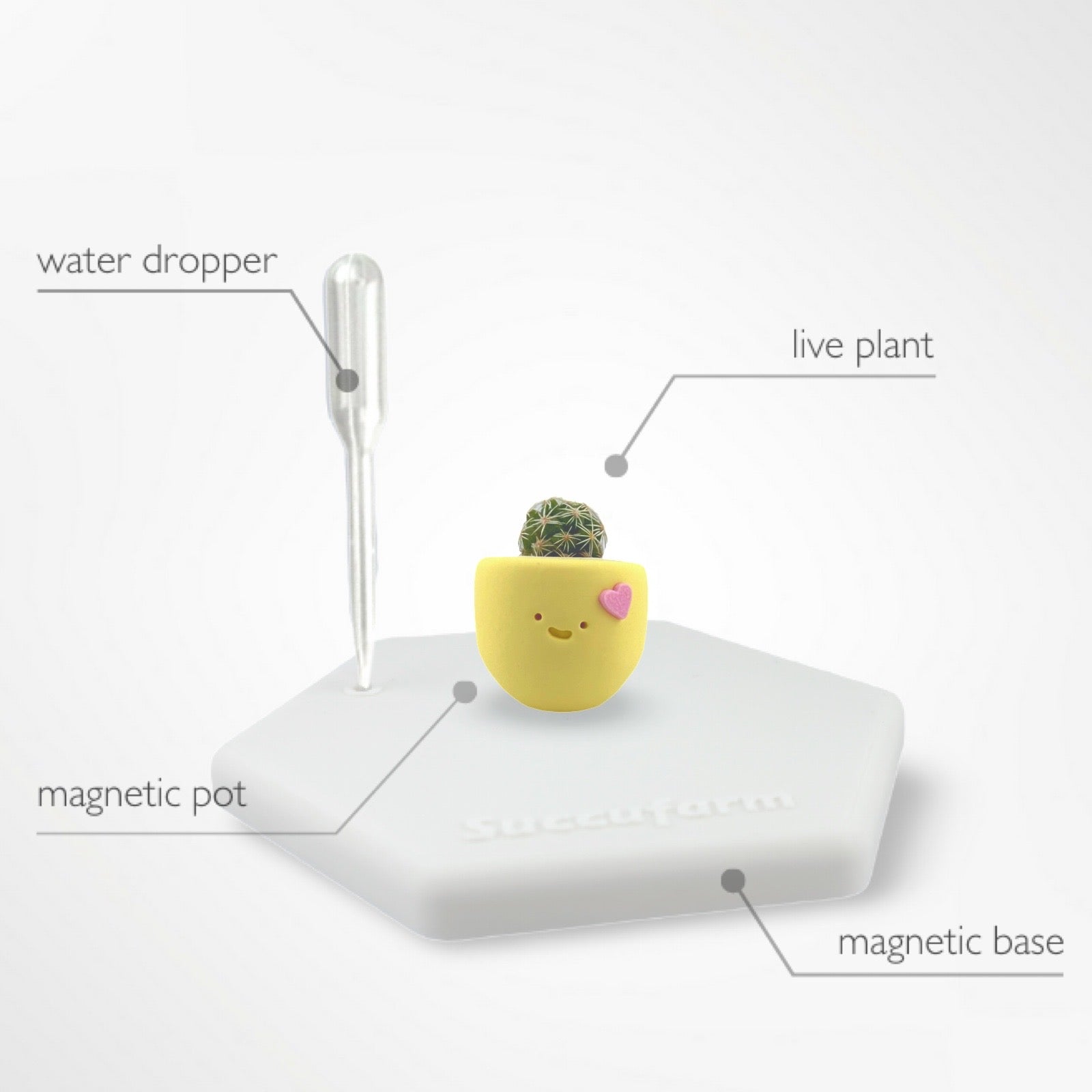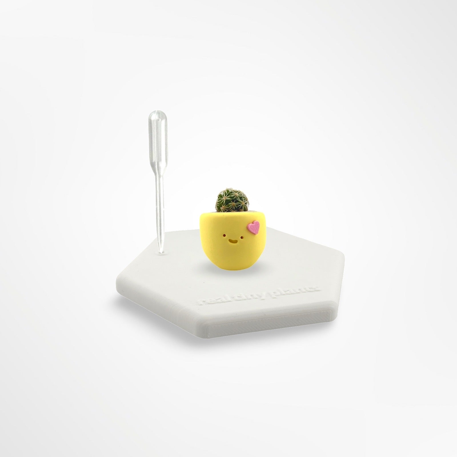 🧲 Each pot is magnetized to a hexagon stand, ensuring your tiny plant stays upright and centered. The stand also conveniently holds your tiny dropper.